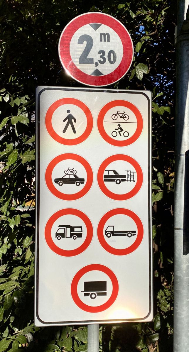Cars with a height of more than 2.30 mt and cars with bicycle racks/ trailers / campers / trucks are not allowed to enter the car park ! Please pay attention to the warning signs at the entrance !